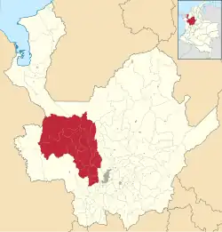 ![]() Abriaquí • Anzá • Armenia • Buriticá • Cañasgordas • Dabeiba • Ebéjico • Frontino • Giraldo • Heliconia • Liborina • Olaya • Peque • Sabanalarga • San Jerónimo • Santa Fe de Antioquia • Sopetrán • Uramita |
