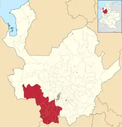 ![]() Amagá • Andes • Angelópolis • Betania • Betulia • Caicedo • Caramanta • Ciudad Bolívar • Concordia • Fredonia • Hispania • Jardín • Jericó • La Pintada • Montebello • Pueblorrico • Salgar • Santa Bárbara • Támesis • Tarso • Titiribí • Urrao • Valparaíso • Venecia |