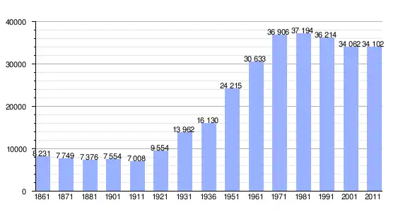 | Variação demográfica do município entre 1861 e 2011[3] |