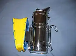 O fumigador é uma invenção de Moses Quinby em 1875. Tem a função de produzir fumaça, sendo esta essencial para um manejo seguro com as abelhas. Os fumigadores consistem de um fole da qual o ar é soprado para dentro da câmara de combustão em que o apicultor queima combustíveis sólidos naturais. Existem modelos modernos que são vendidos sem fole manual, sendo este substituído por uma ventoinha eléctrica a bateria que é ativada por um interruptor. O fumigador manual é geralmente composto de tampa, fole, fornalha, grelha e bico. O fumigador que hoje é utilizado pelos apicultores brasileiros foi desenvolvido no Brasil, a partir do modelo anteriormente utilizado, de dimensões menores, após o processo de africanização que as abelhas sofreram no País. O modelo brasileiro por apresentar maior capacidade de armazenamento da matéria-prima a ser queimada, propicia a produção de fumaça por períodos mais longos, sem a necessidade frequente de abastecimento. O desenvolvimento desse fumigador, juntamente com outras técnicas de manejo foram fundamentais para a continuidade da apicultura no Brasil, pois viabilizou o manejo das abelhas africanizadas.