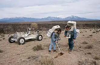 - ↑ Jones, Eric M. (1996). «Deploying the Lunar Roving Vehicle». Apollo 15 Lunar Surface Journal. NASA. Consultado em 15 de março de 2019