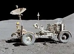 Um veículo que pudesse operar na superfície da Lua já tinha sido considerado pela NASA no começo da década de 1960 mas, o primeiro astromóvel da história foi o soviético Lunokhod 1, não-tripulado e controlado remotamente a partir da Terra, em 1970.[49][50][51] Uma das primeiras versões estadounidenses foi chamada de MOLAB e possuía uma cabine fechada que teria pesado 2,7 toneladas; alguns protótipos menores chegaram a ser testados no Arizona. Uma veículo tão grande foi considerado desnecessário quando ficou claro que a NASA não estabeleceria uma base lunar. Um veículo mesmo assim iria ajudar as missões J, que se concentrariam em ciência, porém sua massa foi limitada a 230 quilogramas e ainda não estava claro que um veículo tão leve poderia ser útil. A NASA só foi decidir seguir adiante com a ideia do veículo em maio de 1969, enquanto a Apollo 10, o ensaio geral para a primeira alunissagem, estava voltando para a Terra. A Boeing conseguiu um contrato por administração para construir três veículos; estouros de orçamento, principalmente no sistema de navegação, elevaram o custo dos três veículos para quarenta milhões de dólares. Este valor chamou muito a atenção da mídia em uma época em que o público estava cansado do programa espacial e o orçamento da NASA estava sendo cortado.[52]