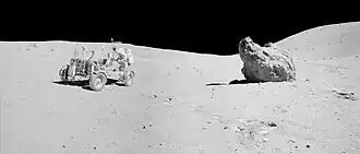 - ↑ Jones, Eric M. (21 de julho de 2015). «Post-Landing Activities». Apollo 16 Lunar Surface Journal. NASA. Consultado em 27 de outubro de 2021
