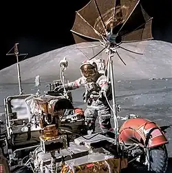 A maneira como os astronautas subiam de novo no jipe lunar, após descer para observar e coletar amostras ou tirar fotografias, era interessante: eles ficavam em pé ao lado do veículo, perto de seus assentos e olhando para frente. Pulavam para os assentos e, se tivessem sorte, com a ajuda da baixa gravidade, caíam sentados na posição certa; numa das vezes, entretanto, Cernan errou o pulo e caiu sentado no chão.