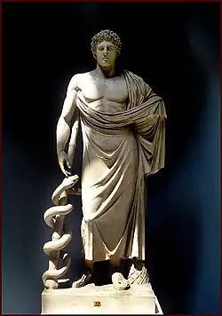 ![]() Apolo Belvedere, a mais célebre representação do deus. Original grego atribuído a Leocarés, hoje nos Museus Vaticanos | |