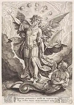 A visão negativa da mitologia grega continuou ao longo de toda a Idade Média, e Apolo chegou a ser identificado com o Diabo.[52] Mas a tradição popular de culto dos deuses solares era por demais arraigada para que seu significado pudesse ser obliterado pelos cristãos, e de fato vários dos atributos apolíneos foram transferidos para novos personagens da cena religiosa em mudança, numa "política de solarização", como referiu Christian Mandon. São Jerônimo orientou a liturgia do batismo dizendo que o cristão deveria morrer para o pecado e se voltar para o leste - onde nasce o sol - estabelecendo uma aliança com o "Sol da Justiça", o Cristo, em quem poderia renascer.[53] Em torno do século VI surgiu substituindo Apolo o culto do arcanjo São Miguel, cuja vitória sobre a "Antiga Serpente" - um dos nomes do Diabo - é o exemplo mais claro de paralelismo com a vitória de Apolo sobre a Píton. Seu culto se disseminou rapidamente na Idade Média, muitas vezes instituído sobre antigos santuários de Apolo, e em alguns lugares da Europa suplantou o do próprio Cristo.[3] Ao mesmo tempo, a iconografia de Apolo, especialmente aquela desenvolvida no período helenista-romano, foi absorvida rapidamente pelo Cristianismo para as primeiras representações de Cristo. Desde o século IV apareceram imagens de Cristo com atributos típicos de Apolo, como o halo, uma coroa de raios de luz, às vezes conduzindo uma quadriga, da mesma forma como Apolo-Febo-Mitra era figurado em pinturas e mosaicos mais antigos. Também na poesia dos séculos VI-VII Cristo imita Apolo, sendo descrito em hinos ambrosianos como o "Sol Verdadeiro" que dissipa as trevas. O Cristo ressurrecto se tornou, assim, o novo Apolo, um homem-deus, triunfante em sua ressurreição, atraindo todo o poder para si e irradiando-o imperialmente sobre toda a Terra. Para isso concorreu o desenvolvimento mais tarde de uma "teologia da luz", que teve seu florescimento no período gótico, a partir dos séculos XI-XII, e do conceito da Igreja Militante, cujo fruto típico foram as Cruzadas, que segundo Pierre Val foram uma interpretação apolínea do cristianismo.[54][55]