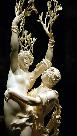 Apolo teve um grande número de amores, masculinos e femininos, mortais e imortais, mas geralmente não foi correspondido, ou quando foi, alguma tragédia interrompeu o romance. Aqui são citados apenas alguns, lembrando que de acordo com as várias fontes podem ser encontradas versões divergentes de cada história. Ovídio disse nas Metamorfoses que o primeiro amor de Apolo foi Dafne, uma ninfa, mas o amor acabou frustrado por Eros, que lançando sua flecha de chumbo contra a ninfa, fê-la rejeitar o deus, enquanto que dirigindo sua flecha de ouro para Apolo, provocou-lhe intensa paixão. Teve motivos para isso, pois Apolo havia desdenhado da habilidade do deus do amor com o arco e gabado suas próprias vitórias. Depois de ser incansavelmente perseguida por Apolo, Dafne suplicou para seu pai para que fosse transformada em um loureiro. Apolo declarou então que o loureiro seria sua árvore sagrada. Os vencedores dos Jogos recebiam uma coroa de folhas de loureiro.[79] Ciparisso era especialmente afeiçoado a um cervo domesticado. Acidentalmente matou-o com seu dardo, e, inconsolável, pediu para Apolo, que o amava, para pranteá-lo para sempre. Apolo atendeu ao seu pedido transformando-o em cipreste, que tornou-se uma árvore símbolo do luto.[80] Hermes e Apolo disputaram o amor de Quíone, por sua grande beleza. Temeroso que Apolo a ganhasse, Hermes tocou seus lábios com o caduceu, fê-la dormir e a possuiu. Não obstante, Apolo, disfarçado de uma velha, penetrou no seu quarto e a amou também. De Hermes Quione concebeu Autólico, e de Apolo, Filamon, mas orgulhou-se demasiado disso, julgando-se mais bela que Ártemis. Então a deusa injuriada a matou. O pai de Quíone, tomado pela dor, jogou-se de um penhasco, mas Apolo o transformou em uma águia feroz.[81]