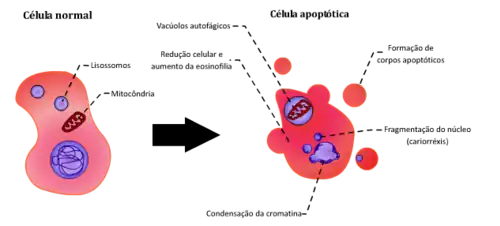 Algumas mudanças só podem ser vistas quando a célula é analisada em microscopia eletrônica, mas, de maneira geral, os fenômenos que culminam com a morte celular programada são: