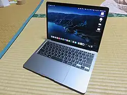 Em 2020, a empresa anuncia a saída dos Chips da linha Mac da Intel para os SoC Apple Silicon, em setembro são lançados os celulares da linha iPhone 12, os primeiros a virem com suporte a internet 5G,[42] em novembro são lançados os primeiros Macs com chip M1, o MacBook Air, o MacBook Pro e o Mac mini. Em 2021 é lançado o iMac com chip M2 junto com cinco opções de cores, algo que a empresa não fazia desde 1999. Em 2022 são lançados os primeiros dispositivos com o chip M2, o MacBook Air, o MacBook Pro e o iPad Pro. Em 2023 é lançado um sistema de empréstimos para o Apple Wallet.[43]