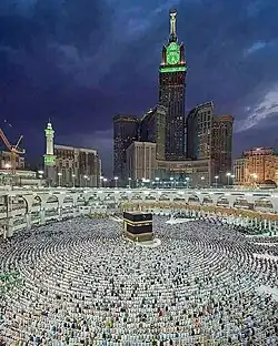 Pouco antes do advento do Islã, além dos assentamentos comerciais urbanos (como Meca e Medina), muito do que viria a se tornar a Arábia Saudita era povoado por sociedades tribais pastorais nômades.[40] O profeta islâmico Maomé nasceu em Meca por volta do ano 571. No início do século VII, Maomé uniu as várias tribos da península e criou um único sistema religioso islâmico.[41] Após sua morte em 632, seus seguidores expandiram rapidamente o território sob o domínio muçulmano para além da Arábia, conquistando grandes e sem precedentes porções de território (da península Ibérica no oeste ao atual Paquistão no leste) em questão de décadas. A Arábia logo se tornou uma região politicamente mais periférica do mundo muçulmano, conforme o foco mudou para as vastas terras recém-conquistadas.[41]