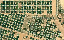 Na Arábia Saudita, assim como em outros países do Oriente Médio, a agricultura é feita principalmente através do sistema de pivô central de irrigação, onde se capta a água subterrânea dos lençóis freáticos que ficam abaixo do deserto. Isso explica a presença de plantações circulares em regiões completamente inóspitas do deserto da Arábia Saudita. Cerca de 85% da água disponível na Arábia Saudita é utilizada na agricultura.[75]