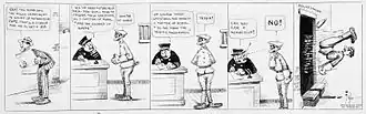 Tira diária de 1913 de Mutt e Jeff de Bud Fisher. Em um arco de história, a trama continuaria na tira do dia seguinte.