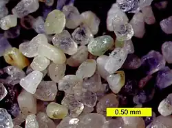 Areia[1] é um conjunto de partículas de rochas degradadas, um material de origem mineral finamente dividido em grânulos ou granito, composto basicamente de dióxido de silício, com 0,063 a 2 mm.