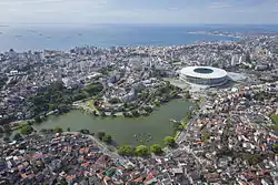 Casa de Apostas Arena Fonte Nova é um estádio de futebol localizado em Salvador, no estado brasileiro da Bahia, reconstruído no mesmo local do antigo Estádio Octávio Mangabeira, da qual herdou o apelido "Fonte Nova".[11] O nome oficial da arena é Complexo Esportivo Cultural Octávio Mangabeira.[12] Entretanto, por questões de patrocínios de nome, foi conhecido por Itaipava Arena Fonte Nova entre 2013 e 2023,[13][14] para em 2024 ganhar o nome atual após os direitos serem vendidos para a empresa Casa de Apostas.[15][16][17]