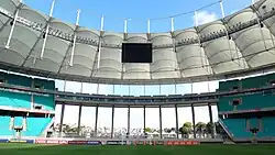 O processo de colocação dos assentos da Arena, que foi iniciada em dezembro do ano passado, estava 30% concluída no início de janeiro. As cores utilizadas nas cadeiras remetem a tons de verde utilizados na marca do projeto e simbolizam as águas esverdeadas do Dique do Tororó, lagoa que fica nas imediações do estádio. Alguns dos espaços VIPs já estavam prontas, juntamente com a decoração e mobiliário.[53]