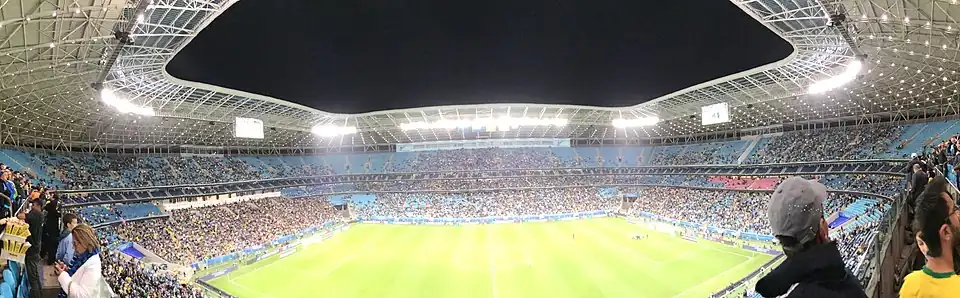 - ↑ «Grêmio Arena». arenapoa.com.br (em inglês). Consultado em 25 de fevereiro de 2017