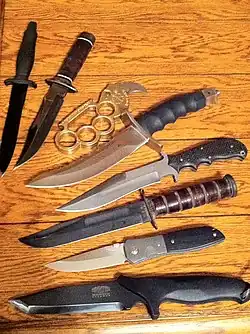 Faca dobrável com alças. Em Portugal é considerado uma arma branca, portanto de venda e porte proibido.