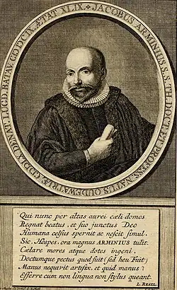 O arminianismo holandês foi originalmente articulado na Remonstrância (1610), uma declaração teológica assinada por 45 ministros e apresentado aos Estados Gerais. O Sínodo de Dort (1618–19) foi convocado pelos Estados Gerais para julgar a Remonstrância. Os cinco pontos da Remonstrância afirmam que: