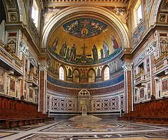 Entre a basílica e o Muralha Aureliana havia, em períodos anteriores, um grande mosteiro, no qual habitava uma comunidade de monges da Ordem de São Bento que servia à igreja. Este mosteiro era o maior de Roma, com seus 36 metros na lateral. A única parte que restou desta edificação foi o claustro, circundado por graciosas colunas de mármore marchetado. Estas são de um período intermediário entre o estilo românico e o gótico: obra do estilo cosmatesco dos Vassaletto, célebre família de marmoristas romanos, datados do início do século XIII.