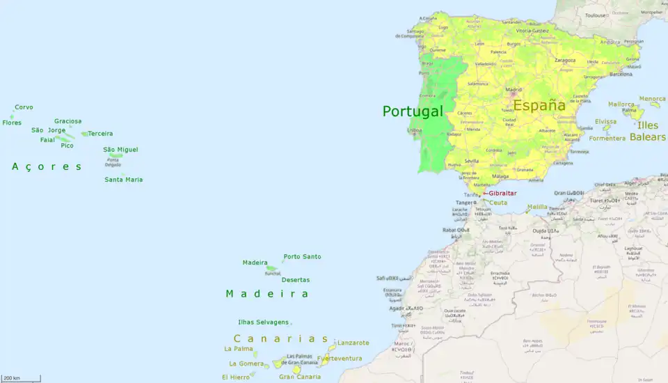 - Ilhas Selvagens (3,6 km²) - duas ilhas habitadas e 17 ilhéus desabitados.