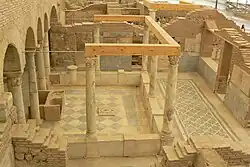 A cronologia do desenvolvimento da arquitetura paleocristã no Egito bizantino ainda é pouco estudada, e as edificações fidedignamente datadas do século IV são poucas. Assim, a Grande Basílica em Abu Mena, cuja criação as fontes coptas atribuem ao reinado de Arcádio (395–408), segundo dados arqueológicos modernos foi construída no final do século V.[72][73] No entanto, como observa o arqueólogo alemão contemporâneo Peter Grossmann, a situação está a esclarecer-se e já é possível traçar as principais tendências de desenvolvimento da arquitetura egípcia.[73]