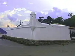 O Forte de São João da Bertioga (SP), construído em alvenaria de pedra nos finais do século XVII a partir de uma paliçada construída no século XVI.