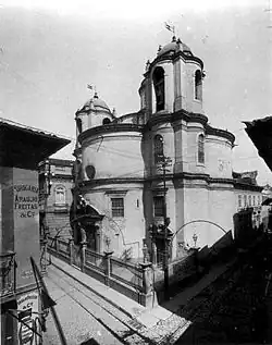 Igreja de São Pedro dos Clérigos (1733-38) do Rio de Janeiro, numa foto de Marc Ferrez. A igreja de linhas curvas foi demolida em 1944.