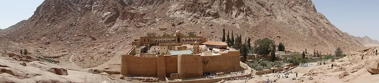 O Mosteiro de Santa Catarina é um dos muitos edifícios sagrados construídos por ordem do imperador Justiniano I, localizado no sopé do Monte Sinai, no Egito, um dos locais de peregrinação importantes. Representa o mosteiro cristão mais antigo que ainda hoje serve o seu propósito. No complexo monástico encontram-se obras de arte de valor incalculável. Além de mosaicos, existe a melhor coleção de ícones primitivos do mundo, muitos executados sobre madeira (Encáustica), bem como objetos litúrgicos, cálices e relicários, além de edifícios eclesiásticos. A grande coleção de ícones contém alguns que datam dos séculos V e VI, o que é um caso único no mundo. Este mosteiro permaneceu intacto mesmo durante o iconoclasmo bizantino e nunca foi saqueado. Ali também se preservou o ícone mais antigo sobre o tema do Antigo Testamento, e o projeto de catalogação das coleções decorre desde a década de 1960. Com os seus 4 500 livros antigos e preciosos, a biblioteca do mosteiro é a segunda em número de livros iluminados no mundo, logo a seguir à Biblioteca Apostólica Vaticana. O mosteiro foi um centro importante para o desenvolvimento do estilo híbrido da arte cruzada e ainda preserva mais de 120 ícones criados nesse estilo, de longe a maior coleção existente. Muitos foram evidentemente pintados por monges latinos, sediados no mosteiro ou nos seus arredores no século XIII.[21]