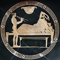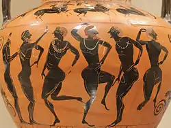 - ↑ Borthwick, E. Kerr. "Dance". In: Wilson, Nigel Guy. Encyclopedia of ancient Greece. Routledge, 2006, pp. 201-202