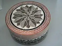 • Cerâmica: uma das formas mais antigas de artesanato, sendo a mais praticada entre os indígenas, que é produzida com a modelagem da argila na criação de utensílios do cotidiano (potes e tigelas) e peças ornamentais pintadas com grafismo.[12]