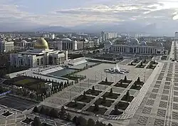 - Palácio de Türkmenbaşy: Sede da presidência da república, é nomeado em homenagem a Saparmyrat Nyýazow, o primeiro presidente do Turcomenistão independente (1991-2006), que foi proclamado "Türkmenbaşy", ou seja, "Líder dos turcomenos". A construção da monumental edifício foi confiada ao grupo francês Bouygues, em colaboração com arquitetos do Ministério de Construção e Arquitetura do Turcomenistão e os escritórios de arquitetura franceses Bellon et Art Études (para o design de interiores). O edifício é inspirado tanto pelo classicismo francês quanto pela arquitetura otomana, bem como pelas tendências arquitetônicas que afirmam ser herdeiras da arquitetura tradicional do Turcomenistão.
