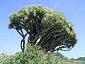 Hábito arborescente criado por engrossamento secundário do caule na espécie Nolina recurvata.