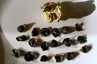 Sementes de Hippeastrum com casca rica em fitomelanos que lhes dão coloração negra.