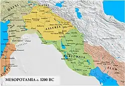 A Assíria, também chamada Império Assírio, foi um reino mesopotâmico e um império do Antigo Oriente Próximo e do Levante. Existiu como um Estado talvez desde o século XXV a.C. (na forma da cidade-Estado de Assur)[1] até seu colapso entre 612 e 609 a.C. — abrangendo os períodos do início ao meio da Idade do Bronze até o final da Idade do Ferro.[2][3] Desde o final do século VII a.C. (quando o Império Neoassírio caiu) até meados do século VII, ele sobreviveu como uma entidade geopolítica,[4][5][6] em sua maioria governada por potências estrangeiras, como o Império Parta[7] e o Império Sassânida[8] entre meados do século II a.C. e final do século III d.C., a parte final do período em que a Mesopotâmia se tornou um importante centro do cristianismo sírio e o local de nascimento da Igreja do Oriente.[9]