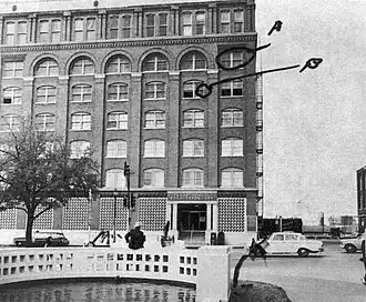 Depois de passar por Elm Street, fica em frente ao edifício do armazém de livros escolares do Texas, a uma distância de 20 metros do primeiro.
