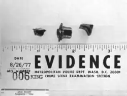 A investigação do FBI encontrou impressões digitais em diversos objetos deixados no banheiro de onde o disparo foi efetuado. As evidências incluíam um rifle Remington Gamemaster, de onde foi disparado ao menos um tiro. As impressões digitais foram rastreadas até um condenado em fuga chamado James Earl Ray.[80] Segundo o Federal Bureau of Investigation e o Comitê Seletivo da Câmara dos Representantes para Assassinatos, Ray havia escapado da Penitenciária Estadual do Missouri utilizando um caminhão de padaria em 23 de abril de 1967, após cumprir 7 anos de prisão por roubo.[81]