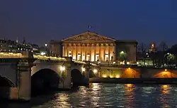 O Palais Bourbon foi projetado por Lorenzo Giardini a pedido de Luís XIV como presente para sua filha Luísa Francisca, Duquesa de Bourbon. A obra durou de 1722 a 1728. Após o período da Restauração Bourbon, o palácio tornou-se sede da Assembleia Nacional. De suas escadarias, têm-se uma vista das Tulherias, da Praça da Concórdia (Place de la Concorde) e da Igreja de la Madeleine, todos estes na margem oposta do rio Sena.