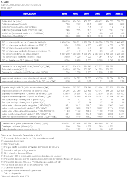 A Secretaria-Geral, atentando-se ao objetivo de integração voltado à promoção do desenvolvimento econômico-social, harmônico e equilibrado, da região, encarrega-se de coletar e reunir indicadores sócio-econômicos da associação, de seus países-membros e de blocos sub-regionais, os quais podem ser úteis como demonstrativo de resultados de funcionamento da associação, bem como de parâmetro para futuras ações regionais e sub-regionais. Estes indicadores sócio-econômicos podem ser encontrados no próprio sítio da ALADI.[4]