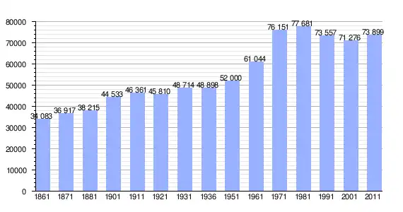 | Variação demográfica do município entre 1861 e 2011[3] |