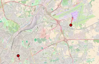 ![]() Mapa dos atentados em relação um ao outro (1) 08:00 : Hall B do Aeroporto de Bruxelas (2) 09:11 : Estação Maelbeek | |