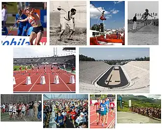 Atletismo é um conjunto de esportes constituído por varias modalidades: corrida, marcha, lançamentos e saltos. De modo geral, o atletismo é praticado em estádios, com exceção de algumas corridas de longa distância, praticadas em vias públicas ou no campo, como a maratona.[1]