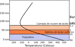 - ↑ «Venus Atmosphere Temperature and Pressure Profiles» (em inglês). Shade Tree Physics. Consultado em 13 de janeiro de 2011