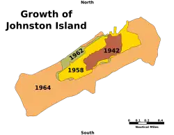 Descoberto pelo britânico Charles J. Johnston em 1807, o atol permanece desabitado até 1858, quando é reivindicado pelo Havaí e pelos Estados Unidos, interessados em seus depósitos de guano – acúmulo de fosfato de cálcio resultante de excrementos de aves da região. Com a anexação do Havaí pelos Estados Unidos, em 1898, confirma-se a soberania norte-americana. Nessa época, a maior parte do guano já havia sido removida. Durante a Segunda Guerra Mundial, o atol serve de base aérea e, em 1958, passa a ser usado para testes nucleares. Mais tarde, os norte-americanos constroem um depósito de armas químicas, para onde levam, em 1989, bombas contendo 400 toneladas de gás asfixiante. Pressão de nações da Oceania levam os Estados Unidos a aceitar, em 1991, a visita de cientistas para verificar as condições de segurança do atol. Segundo o governo dos EUA, os depósitos foram destruídos em dezembro de 2000 e o local deverá ser transformado numa reserva ecológica.