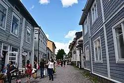 Turistas se familiarizando com a estrutura da cidade velha medieval de Porvoo.