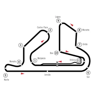 - ↑ Sabino, Fred (29 de janeiro de 2021). «Circuitos clássicos #12: por dez vezes, Jacarepaguá recebeu GP do Brasil de Fórmula 1». https://ge.globo.com. ge. Consultado em 26 de novembro de 2023