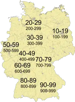 - A 10 a A 19, em Berlim, Brandemburgo, Saxônia, Alta Saxônia e Mecklemburgo-Pomerânia Ocidental;