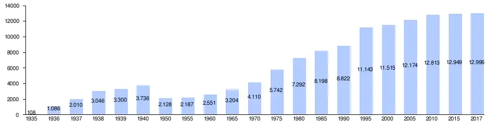 Abaixo, gráfico de desenvolvimento do comprimento total da Autobahn no fim de cada ano:[7][40]