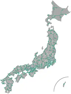 As Vias Expressas Nacionais do Japão compõem a maioria das autoestradas do país. A rede possui uma ligação ininterrupta entre Prefeitura de Aomori, no norte de Honshu, e a Prefeitura de Kagoshima, no sul de Kyushu, ligando Shikoku também. Vias expressas adicionais servem os viajantes em Hokkaido e em Okinawa, embora aqueles que não estão conectados à rede Honshū-Kyūshū-Shikoku. A rede de autoestradas do país tinha um comprimento total de 8 730 km em 2005.[42]