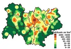 Densidade populacional da região Auvérnia-Ródano-Alpes em 2006[5]
