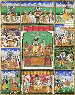 "Avatara, ou a encarnação da divindade, descende do reinado divino pela criação e manutenção da manifestação em um corpo material. E essa forma singular da personalidade da divindade que então se apresenta é chamada de encarnação ou avatara. Tais personalidades estão situadas no mundo espiritual, o reinado divino. Quando eles transcendem para a criação material, eles assumem então o nome avatara." - Chantajar-charitatva 2.20.263 - 264.
